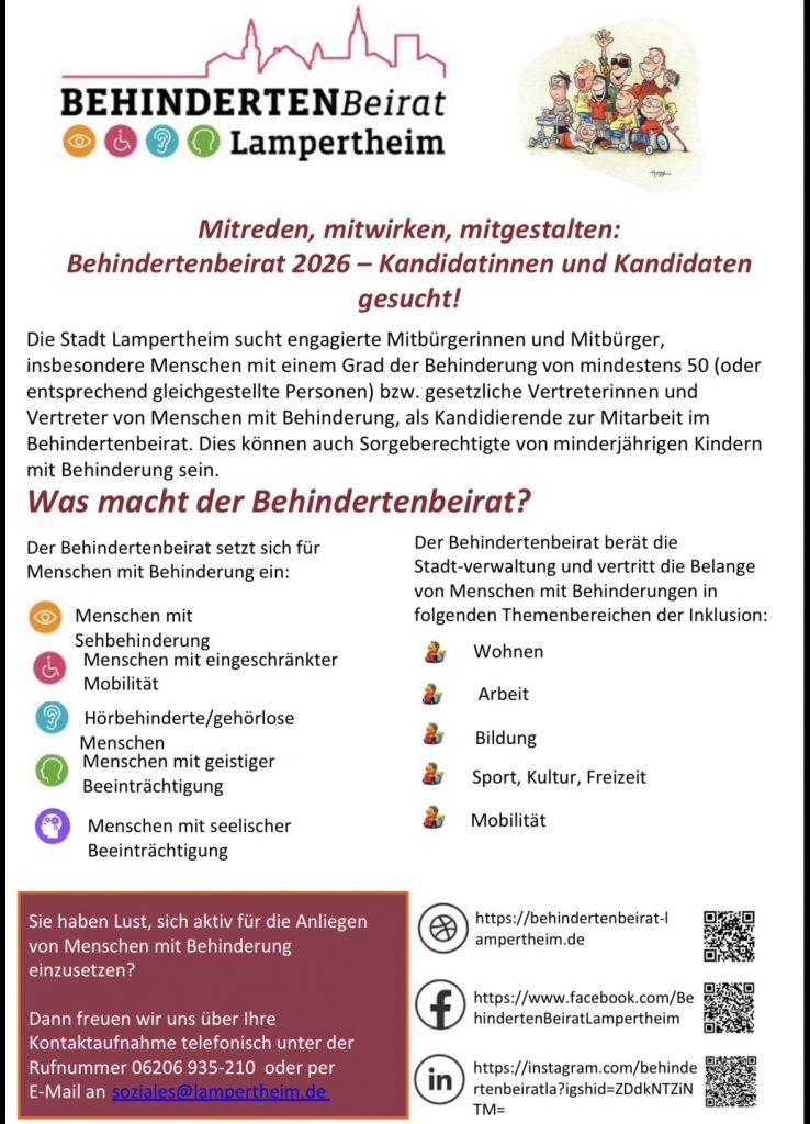 Der Behindertenbeirat Lampertheim setzt sich für die Anliegen von Menschen mit Behinderung ein.